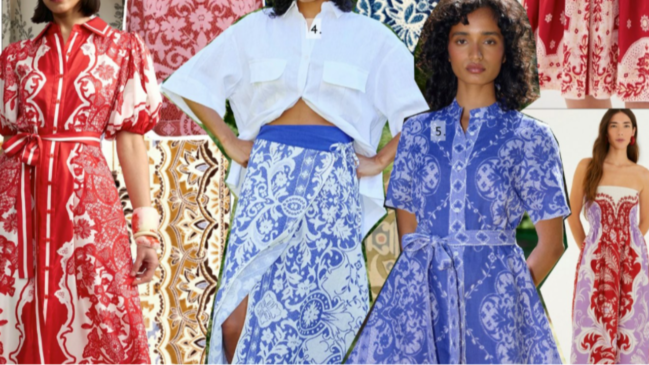 SPRING/SUMMER 27, Womenswear: Reminding us of Nonna's tablecloths or lace trimmings, these monotone prints are engineered and bordered. A monotone almost folk aesthetic.
