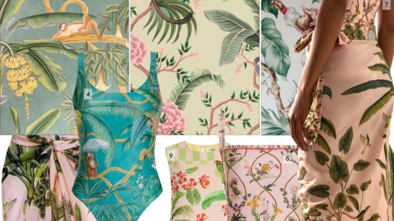 SPRING/SUMMER 27, Womenswear: These botanical tropicals hide some exotic animals. We set them in scenes, or our vines swirl across the page, or we frame them in delicate foliage.